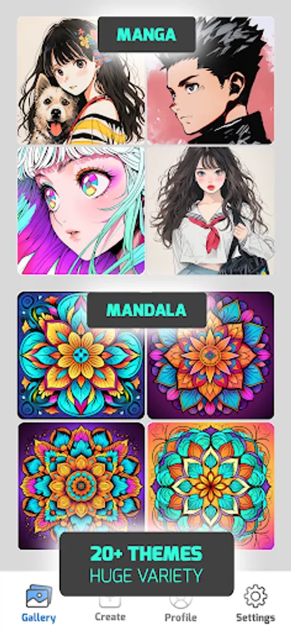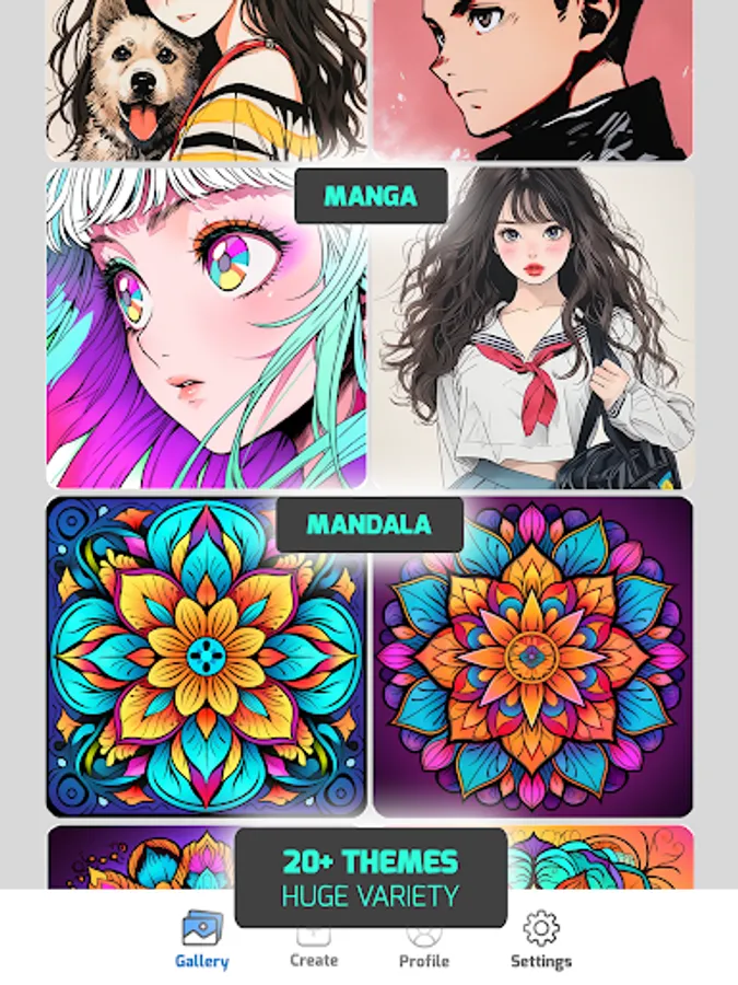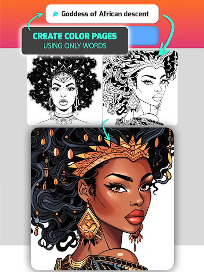 Endless coloring pages: Revel in an unlimited array of coloring pages, crafted for artists of all ages and abilities. From intricate mandalas and captivating landscapes to adorable animals and renowned characters, there's a creative outlet for everyone. Our AI ensures an ever-evolving, never ending content library to keep your inspiration flowing.