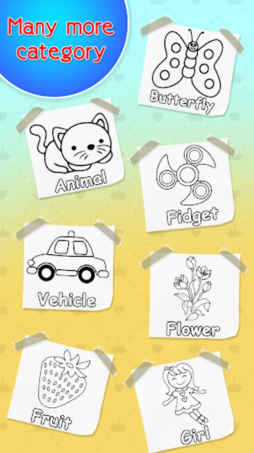 ✐ Many beautiful drawing pages are available to draw & color including (Animals, Fruits, Cars, Trains, Airplanes, Fidgets, Butterfly, Flowers and many more)