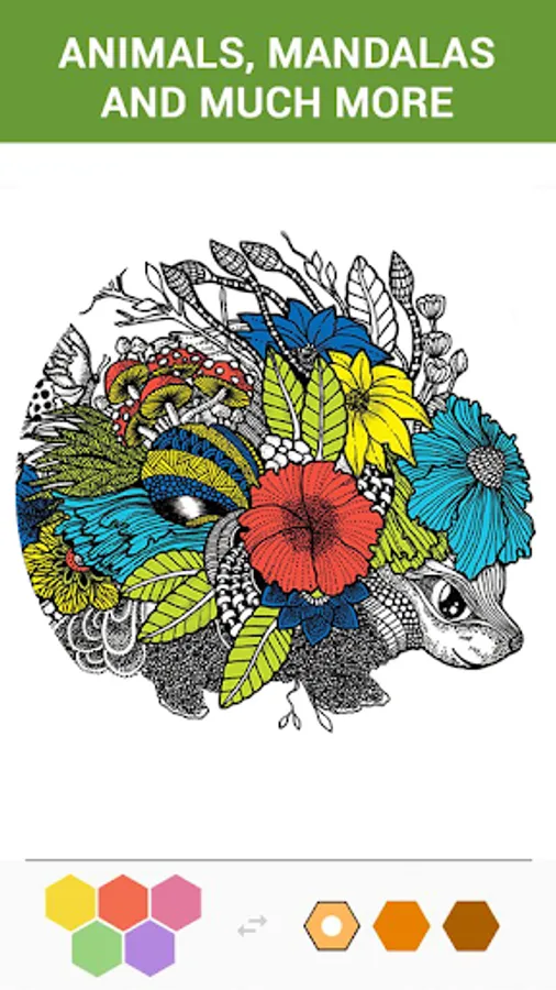 Coloring Book - Coloring Game is a true coloring book with intricate patterns and coloring pages with animals, flowers, places, food and more designs organized into categories. But surprises are not yet finished: you are able to turn any of your own line drawings from photos into coloring pages - simply tap to transform photo to sketch and start drawing! The app magically translates the tactile pleasure of putting pencil, crayon or paintbrush to coloring pages and turns your Android device into a perfect tool to relax and sharpen your drawing skills.