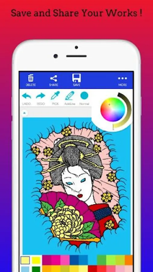 ☑ Save and share your artwork to your friends