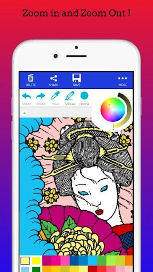 ☑ Zoom in and zoom out to color every detail