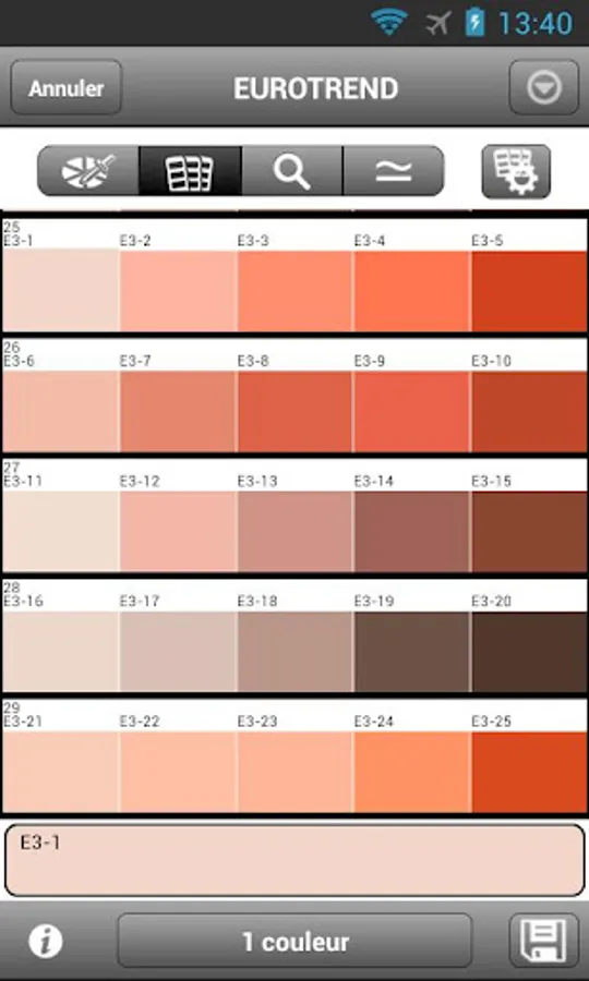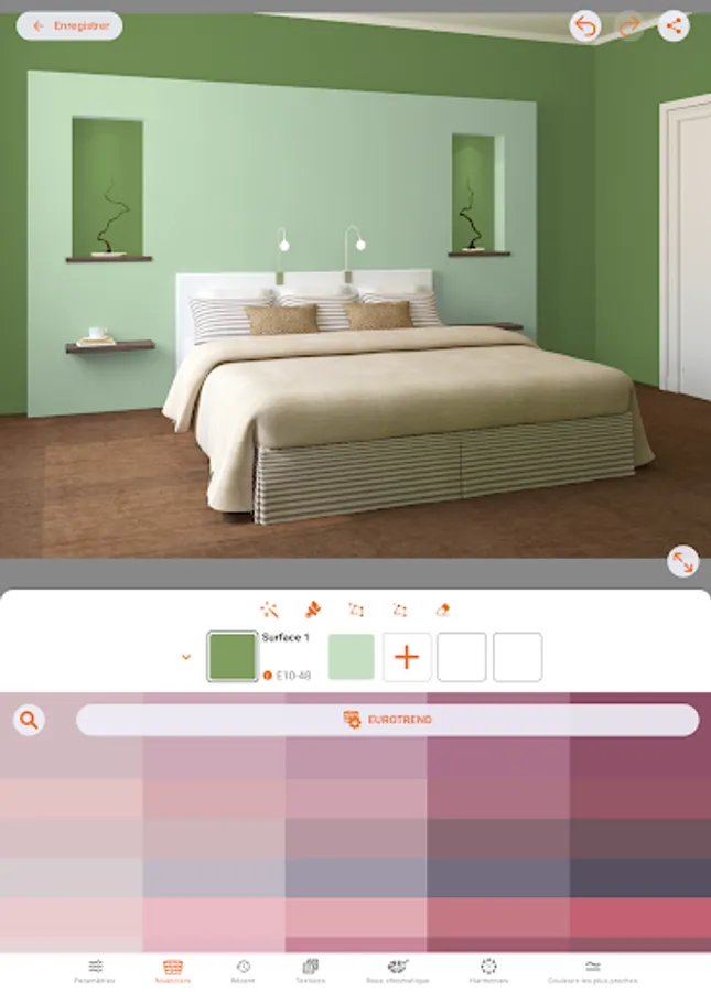 - Choose a color from the available color swatches (Eurotrend, chart VIVA, VIVA spirit with the ability to add the NCS, RAL CLASSIC colors and RECA) and apply it on the previously selected area.