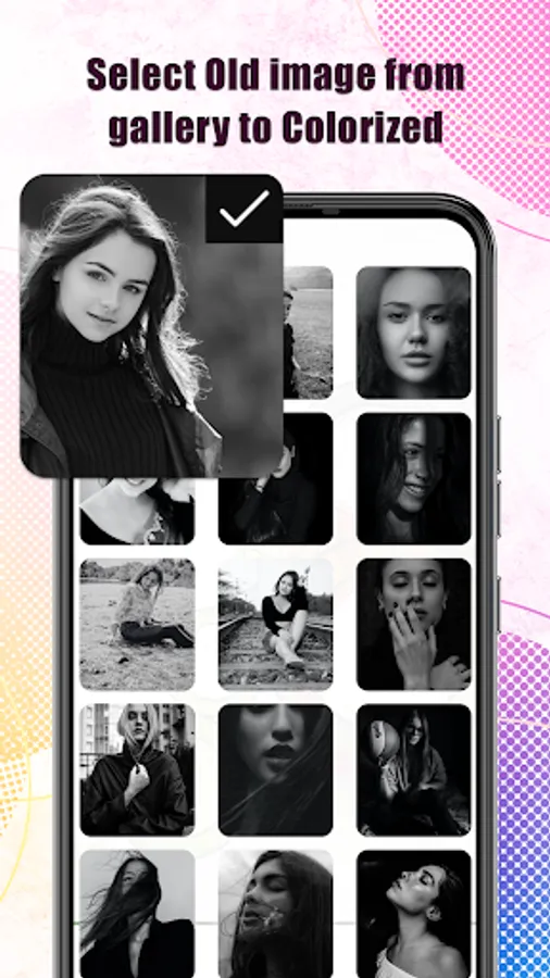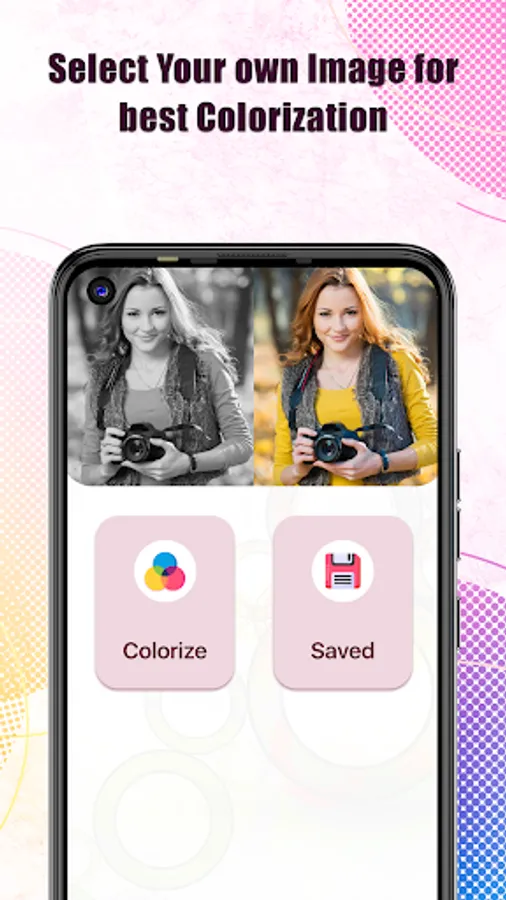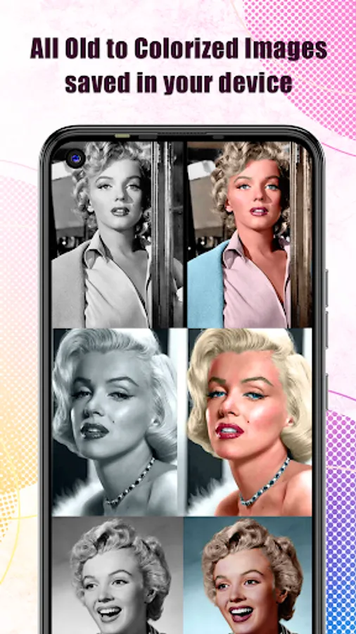 With Old Photo Colorization app you just have to choose a black and white photo from your gallery or take a new one, and lets wait for the magic of AI-powered B&W colorizer. Professional photo colorizing app works for you in a few moments so that you'll see your old photo transformed into a colorful memory.