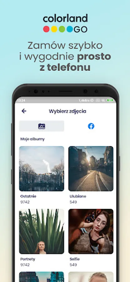 You can use the application without creating an account, we will ask you to register only when you place the order and make the payment. If you are already registered on Colorland.pl, that's great - just log in to your current account and you can order right away. You can also log in with Facebook.