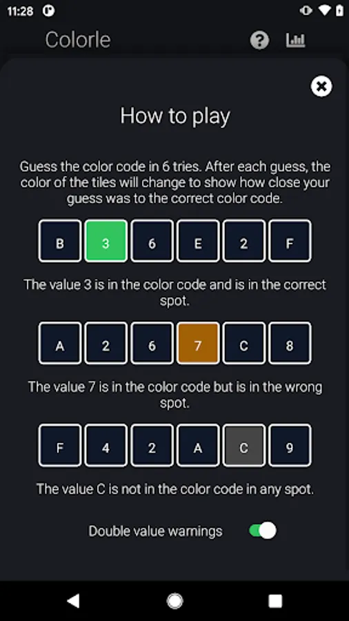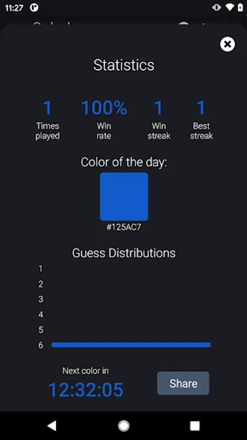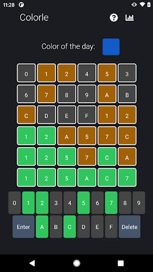 Colorle is a game where you have 6 attempts to figure out a 6 character color code based on hex values.