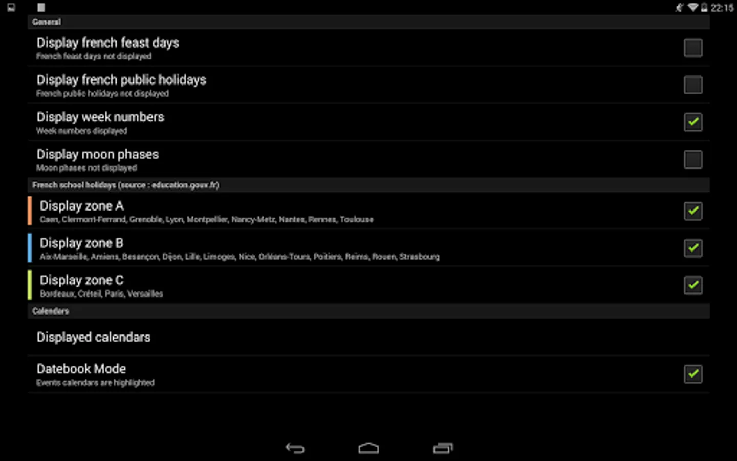 â–ª Many settings to customize the calendar according to your needs; just try them !