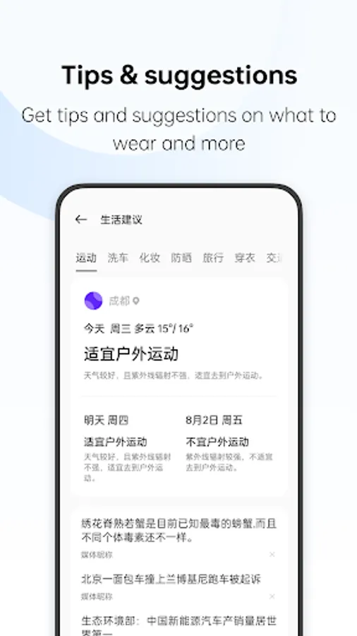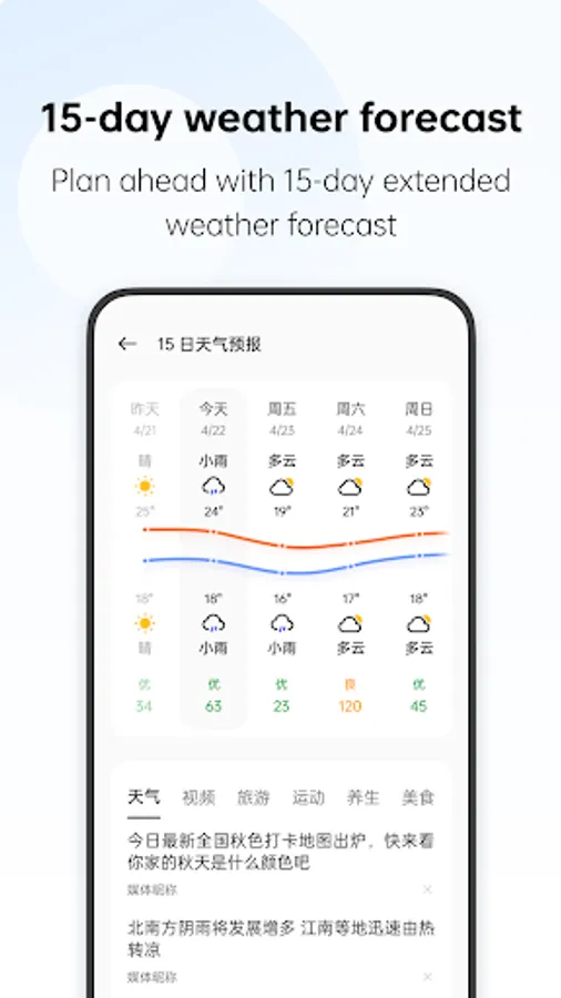 View hour-by-hour and 15-day forecasts, precipitation, air quality, weather-based clothing advice, and more.