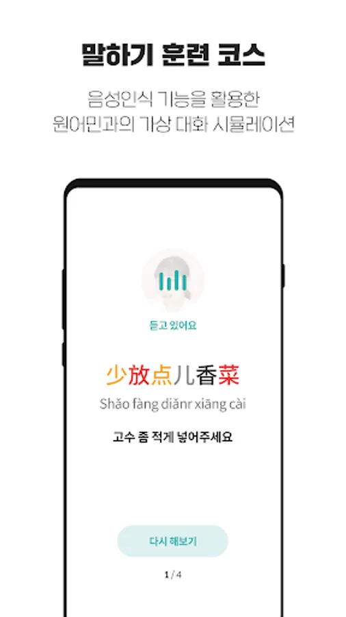 According to the Learning Efficiency Pyramid, 5% of listening is left, while speaking is 90%. In Five Saek Chinese, you can speak sentences without stopping while listening to lectures using speech recognition technology.