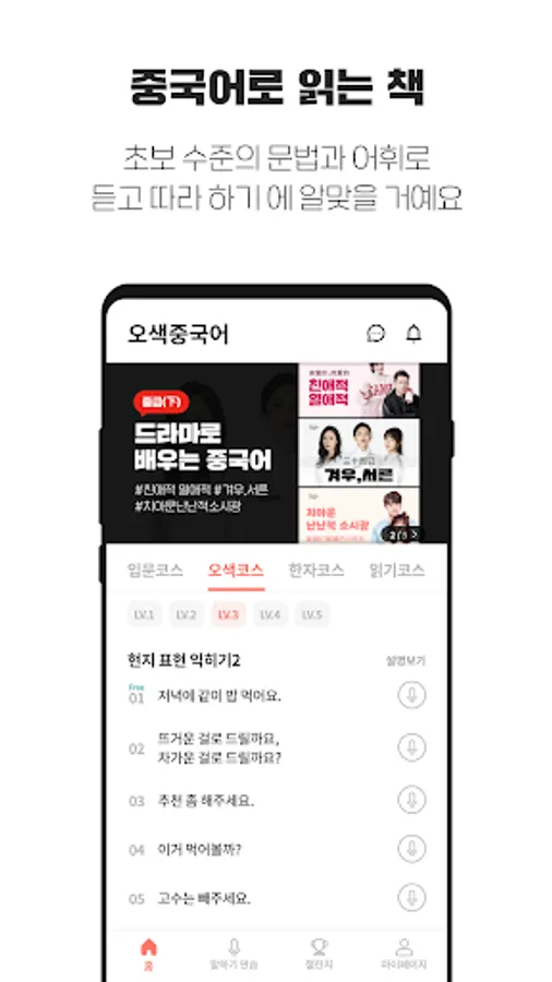 If you look at third-party lectures or textbooks, there are too many complicated usages and words that you do not need to know. Learn only conversational expressions that real native speakers use in daily life in Five Color Chinese.