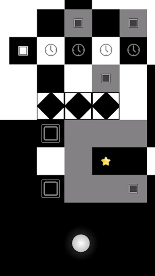 It is a game that seeks bright stars in the world of black and white. You can only move in the same color plate and can change the color plate using with item. For arriving bright star, you have to avoid inverted color plate or blocks that fly to you.