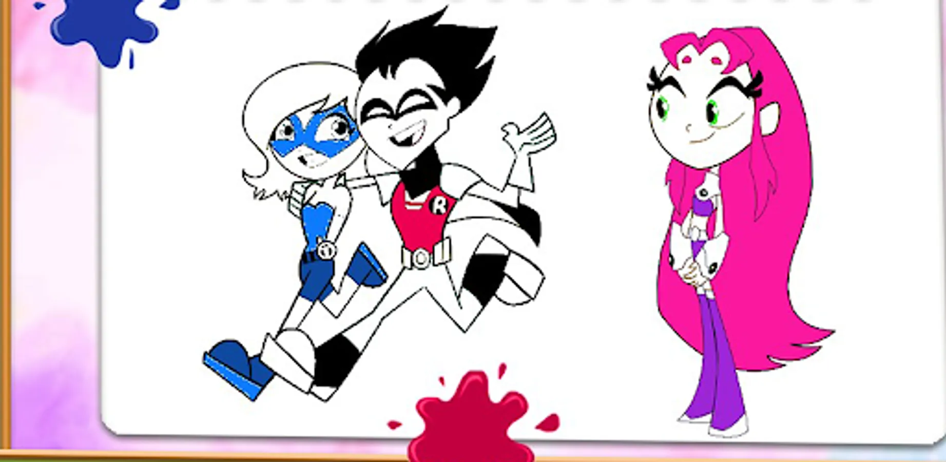 Teen Titans coloring app has multiple categories of coloring pictures, starting from Teen Titans coloring book images to some beautifully created art pages