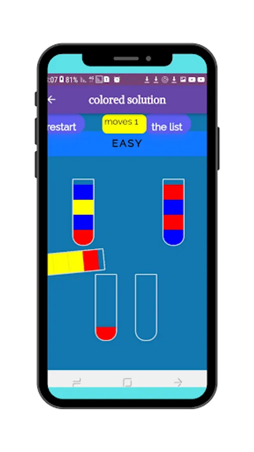 There will be some beakers or test tubes to be exact, your task is to put liquids of the same color together! You can transfer different colored water from one glass to another only if the other glass is empty or if the top layer of water is the same color as the glass from which the water will be taken. The glass you selected will be highlighted to prevent confusion. The restart button will take you back to the beginning of the level, also every time you unlock the same level the water will be mixed. Check out