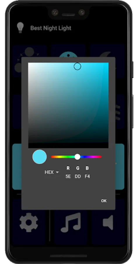 Change the in-app settings to add a sleep timer, display a digital or analog clock on the night light, change the speed that the colors rotate to change the mood light, and more!
