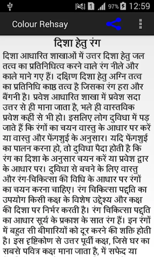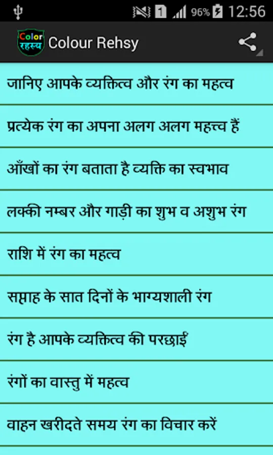 This kind of application gives you the mistery what is the reason behind colour ,what your colour say related to life .Your eyes colour,rashifal, vastu all these thing related to your future can give you judgement according to your colour.