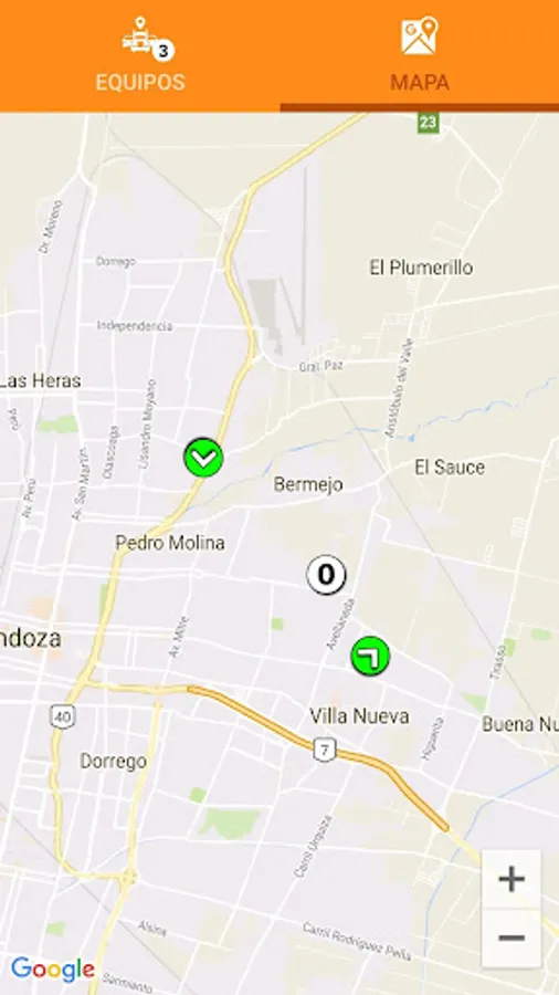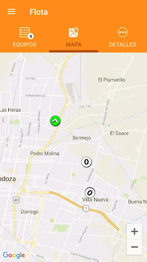 * Details by equipment: By tapping on a device you can access to see its details in addition to the position. You can also consult the historical information of the same by visualizing the route you have followed