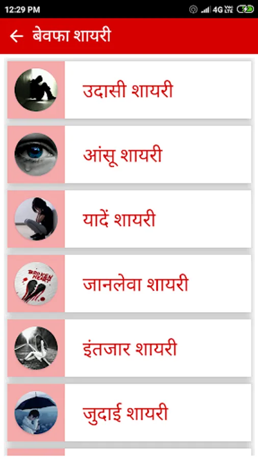 The app is having nice collection of judai shayari and dard shayari also sad shayari.