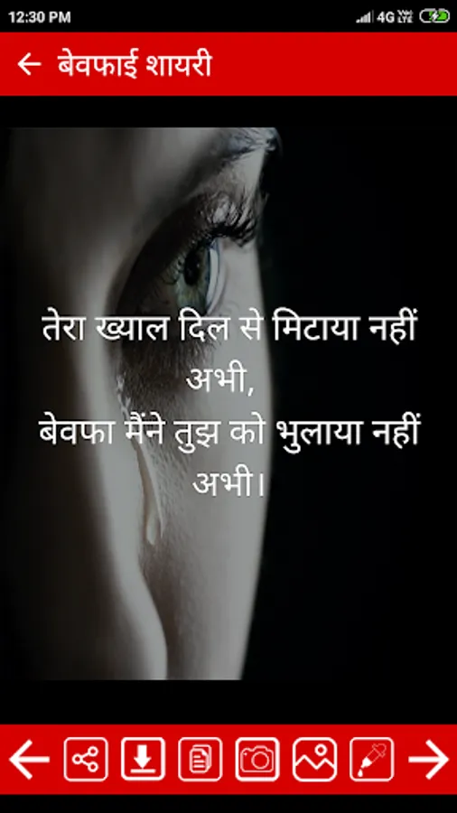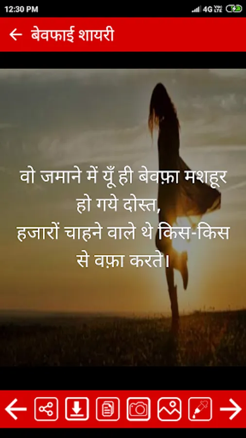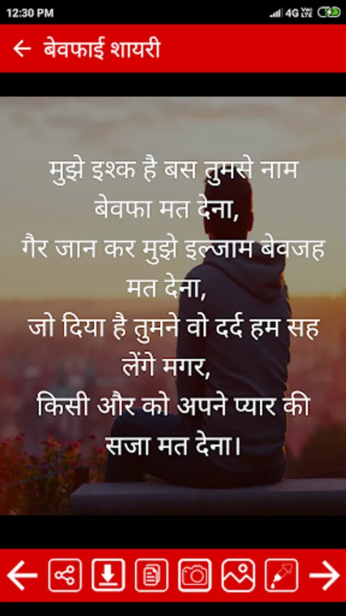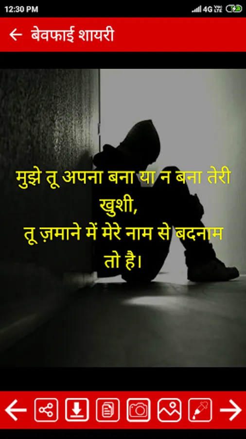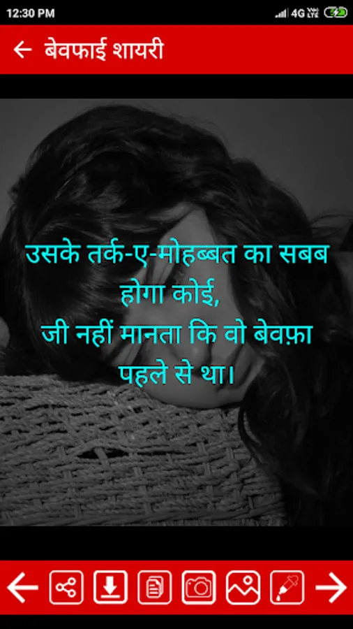 With this hindi bewafa shayari app user can add text on photo, change text color, download picture status and share it.