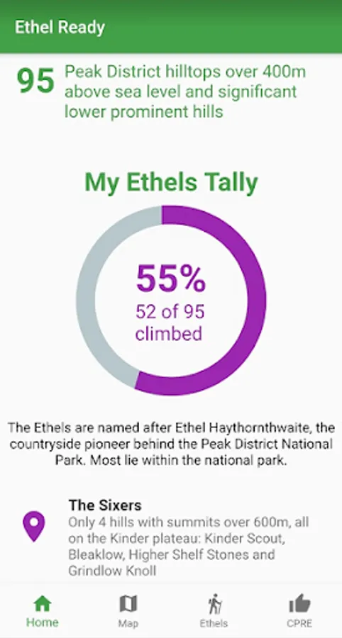 Are your ready for the challenge of climbing all of the Peak District's Ethels? Named after Ethel Haythornthwaite (the pioneer behind the Peak District National Park), the Ethels are all of the Peak District hills over 400m above sea level and significant lower prominent hills. Fewer, lower, easier and (for most of the UK's population) closer than the Munros of Scotland and the Wainwrights of the Lake District.