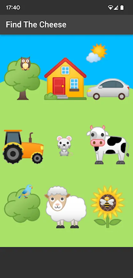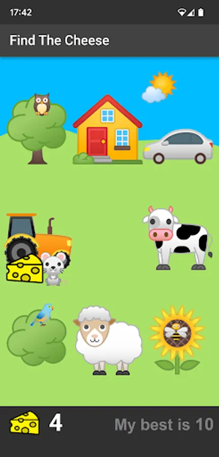 Tap one of the 8 cartoon images to help the mouse to find the hidden cheese