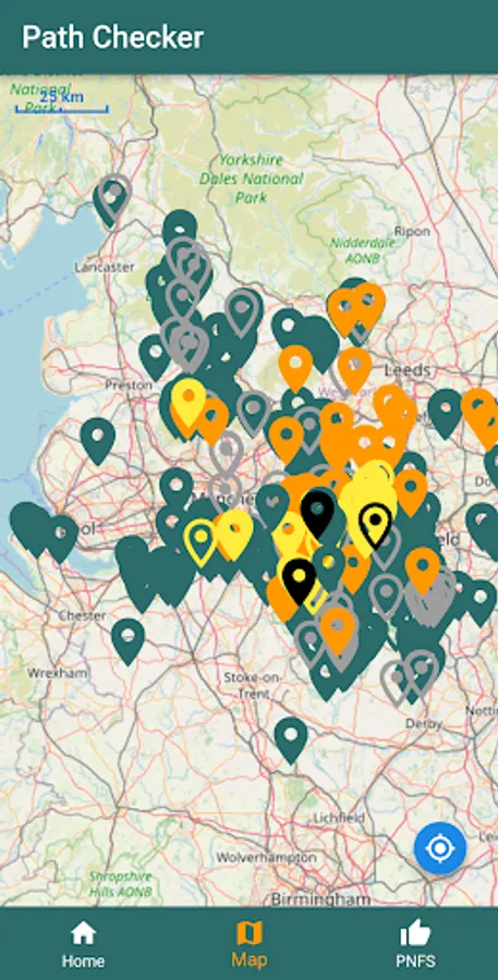 Use the Open Street Map page to locate and see photos of PNFS signs and bridges and to track your location along footpaths. Use the displayed grid reference of your location to find your position on paper OS maps.