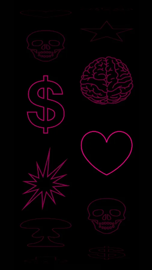 Swipe and activate the movement. Symbols appear by association of 2 pictograms, subject to your free reading and interpretation of the combination obtained.