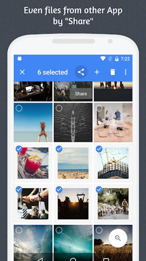Now throw bothering USB wire cable away, File Send help you to transfer files over wireless connection, and you just need a browser to download from other devices.