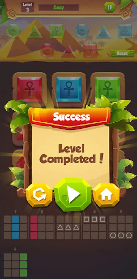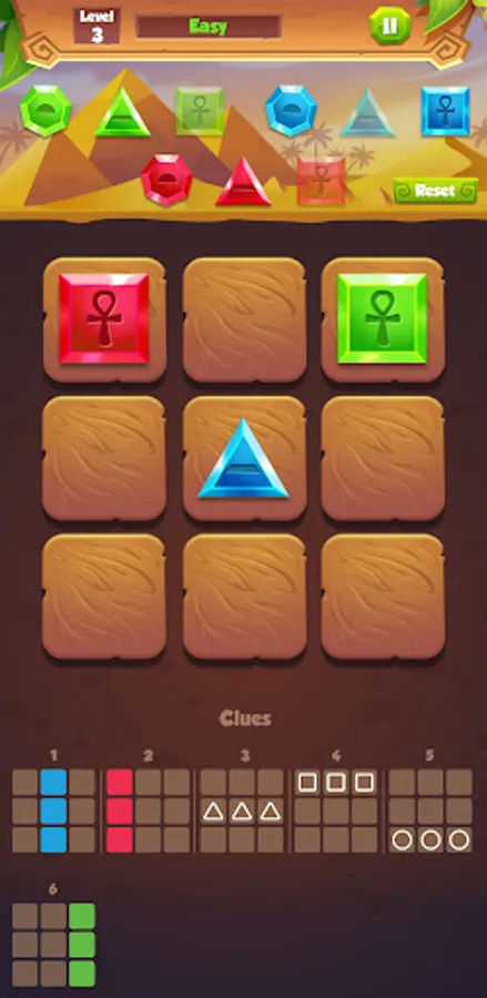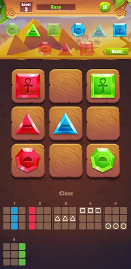 Each level provides several clues which are needed for solving the challenge. The clues are a partial snapshot of the complete logic puzzle and some of them can fit several places in the grid. There is only 1 solution for each challenge, so whenever you place the gems in their correct position, the level will be completed.