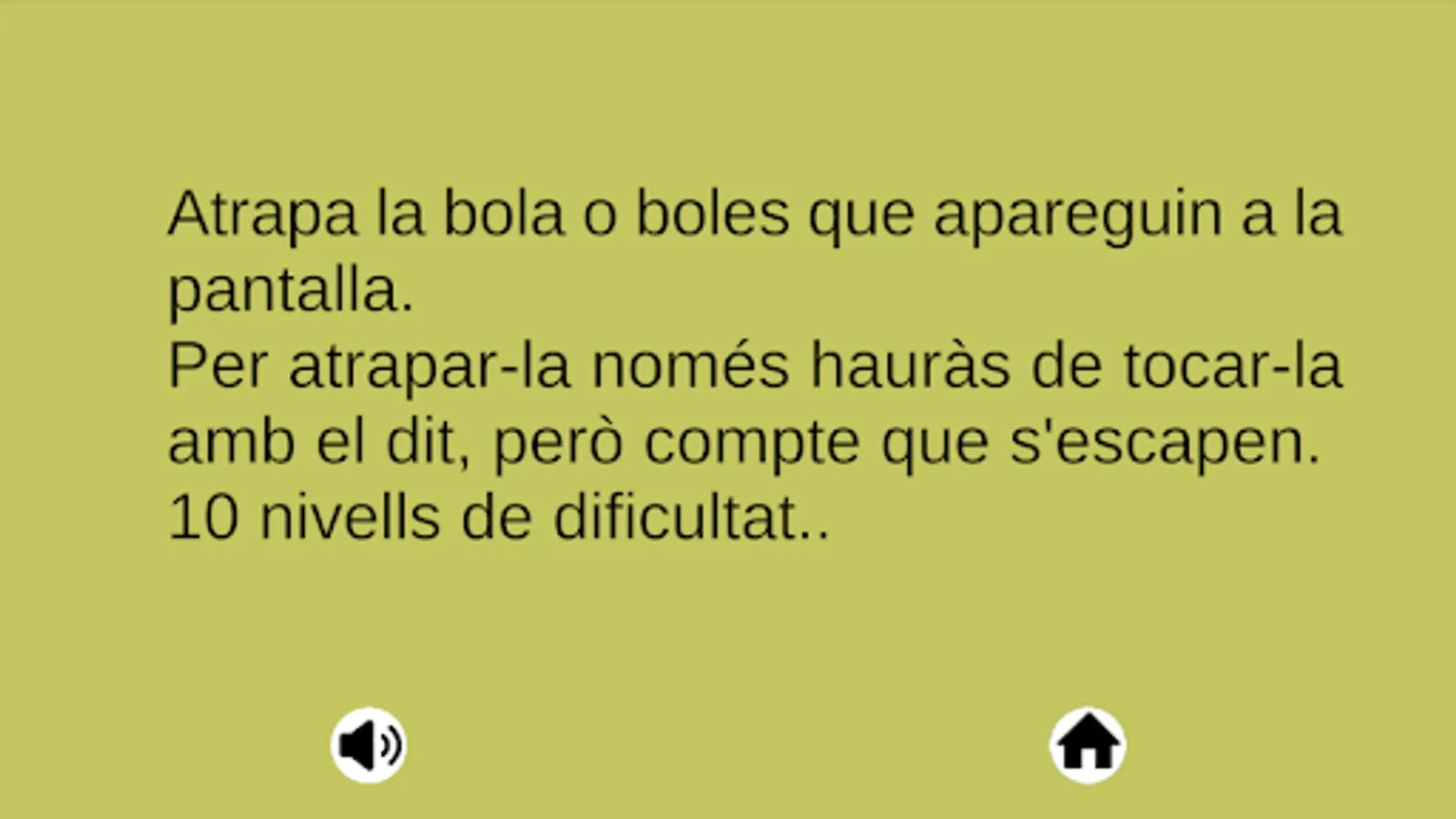 The objective of the game will be to overcome 10 levels. In each level we will find one or more balls that move around the screen and that we will have to touch with our finger.