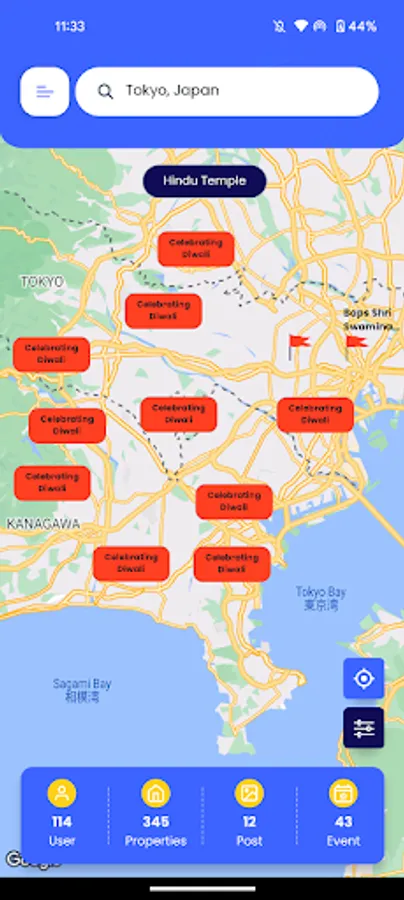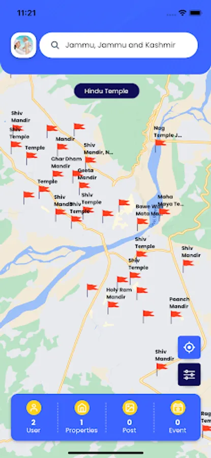 Our app offers several features that cater to the needs of Hindus worldwide. One of the primary features of our app is the temple database. It is a unique crowd-sourced feature that allows users to add and search for temples in any part of the world. Our geolocation-based view allows users to find temples near their location and explore their significance, history, and divine details of Dev’s and Devi’s. Users can upload pictures and videos of the temples to enrich the app's database, making it a rich repository of information. Light up the app with temples and events from around the world