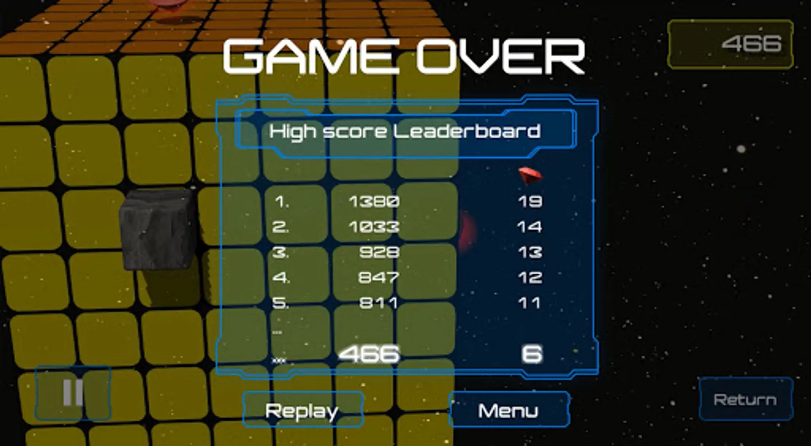 To play the game, swipe left or right to turn, swipe up to jump to the next side of the cube. Timing of your jump is important. Avoid rocks falling on the surface, holes that appear in the playing field or complete layers that are blasted away.
