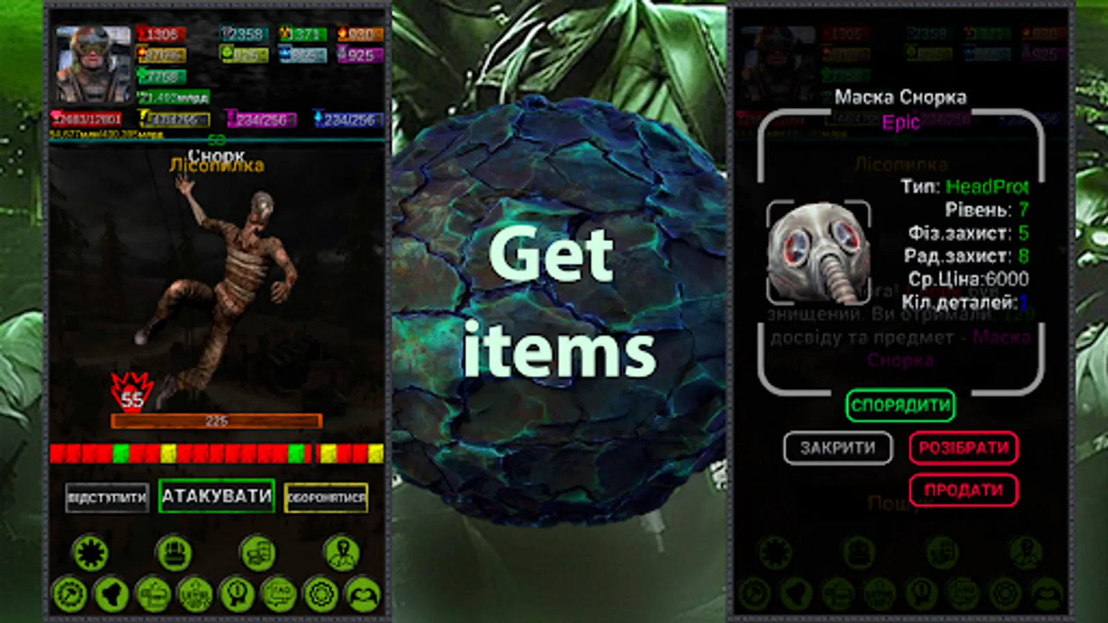 Stalker-clicker is an exciting game on the phone that combines the elements of a post-apocalyptic game and an interactive quest. The player enters the exclusion zone - a mysterious area that was left deserted after an unknown disaster. The area is now inhabited by mutants, the dead, and humans trying to survive in an incredibly dangerous environment.