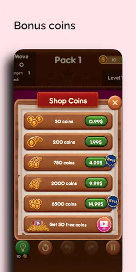 Bonus coins are available upon completing each level.