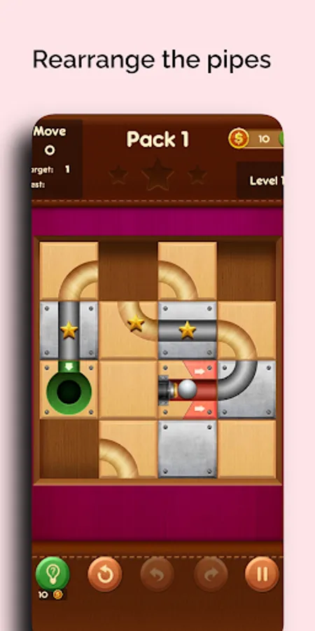 Pipe Game is a typical tile puzzle with a cool challenging twist. Move the sliding tiles to unblock ball through pipes. Enjoy the delight of seeing the ball roll flatly through the connected tiles to the end.