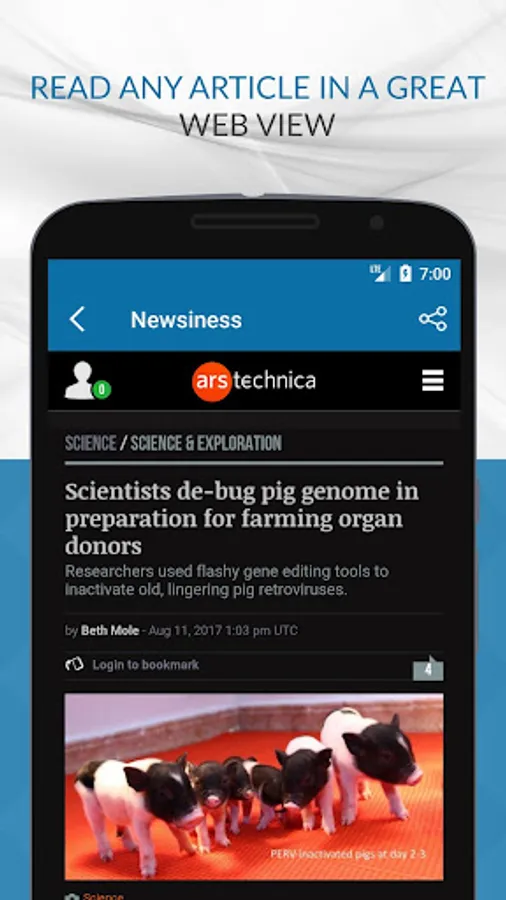 Newsiness is the best free NEWS reader app that will simplify your life, we will give you the access to a very wide selection of news and articles from newspapers, websites and magazines for Free. Yes, it is for Free, so you can take a look at daily articles from famous newspapers like the New York Times, BBC News and much more...