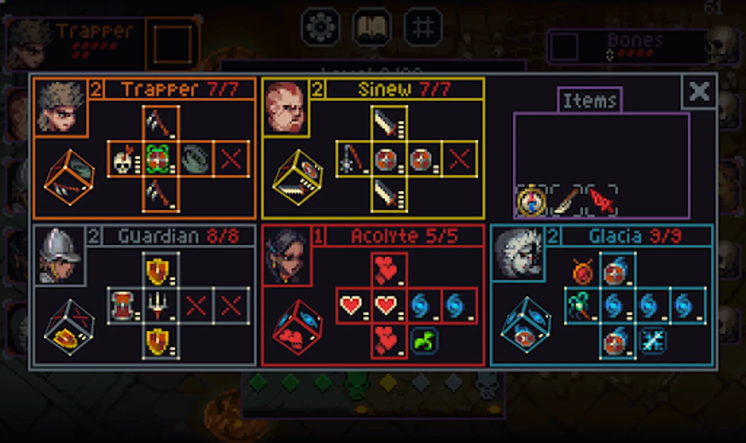 Take control of 5 heroes, each with their own dice. Fight your way through 20 levels of monsters and try to take on the final boss. If you lose a single fight you have to start over so be careful (and lucky!).