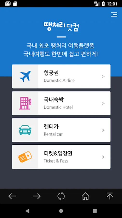* Domestic Airlines You can quickly and easily reserve all fares for all airlines (7 airlines) operating domestically through the domestic travel app. With the Dangchul domestic travel app, you can search and reserve the cheapest airline tickets without any additional charges.