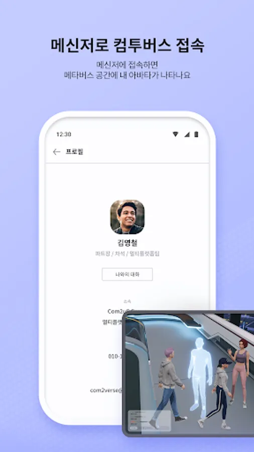 2. Multi-platform linkage: It can be used freely in both PC/mobile messenger and PC metaverse clients. All conversations in the Com2Bus environment are always linked in real time.