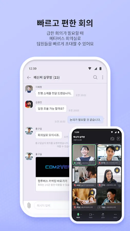 4. Shortcut to the meeting room: If you need to quickly view materials or have an intense remote meeting during a conversation with a colleague, you can join the meeting by going directly to the Com2Bus conference room created by your colleague. If you need a video conference in the middle of a conversation, talk face-to-face at any time on Messenger or Metaverse.