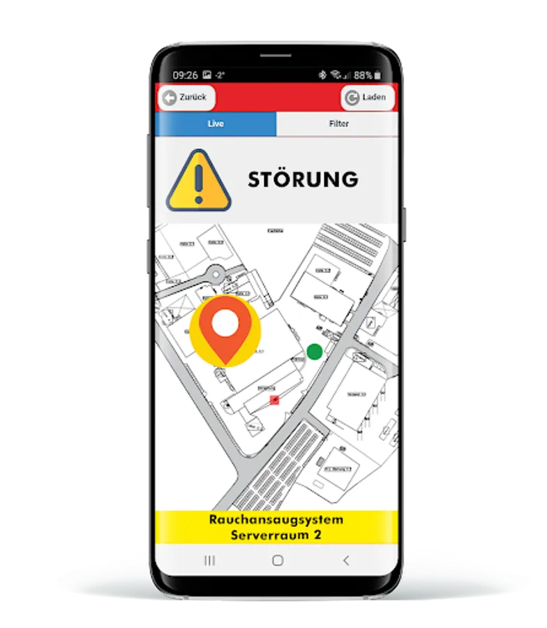 With the app you receive real-time notifications of alarms, malfunctions or shutdowns of your hazard alarm systems (fire and intrusion alarm systems) on any number of mobile devices.
