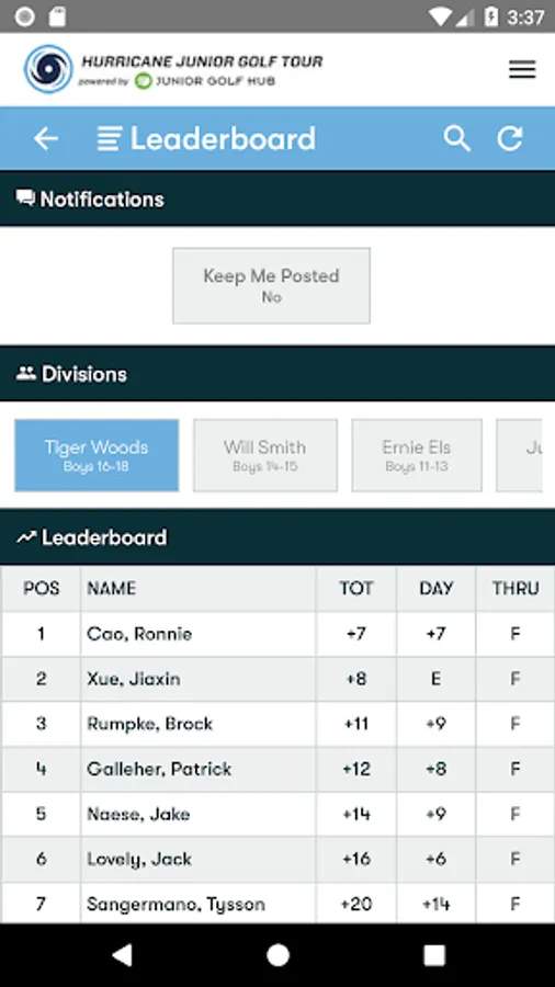 The New Hurricane Tour's mobile application for Tour Schedules, Live Leaderboards, Player Profiles, and Season Rankings.