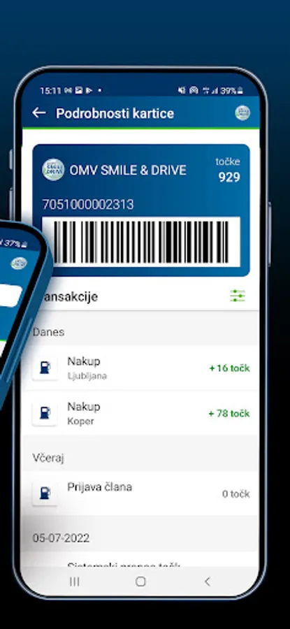 The first time you use the OMV SMILE & DRIVE virtual card at one of our gas stations, we give you 50 loyalty points. Check other current mobile offers in the mobile application.