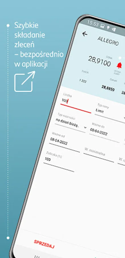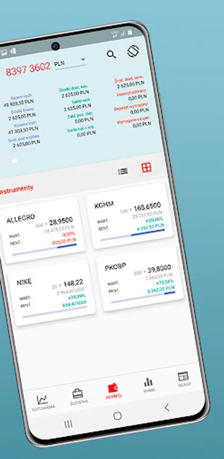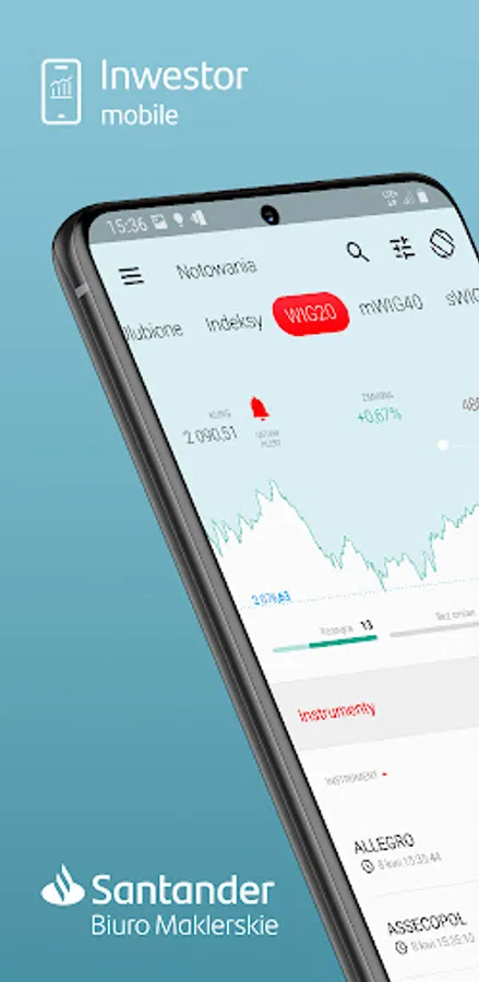 Inwestor mobile application provides an easy and convenient access to services of Santander Biuro Maklerskie.