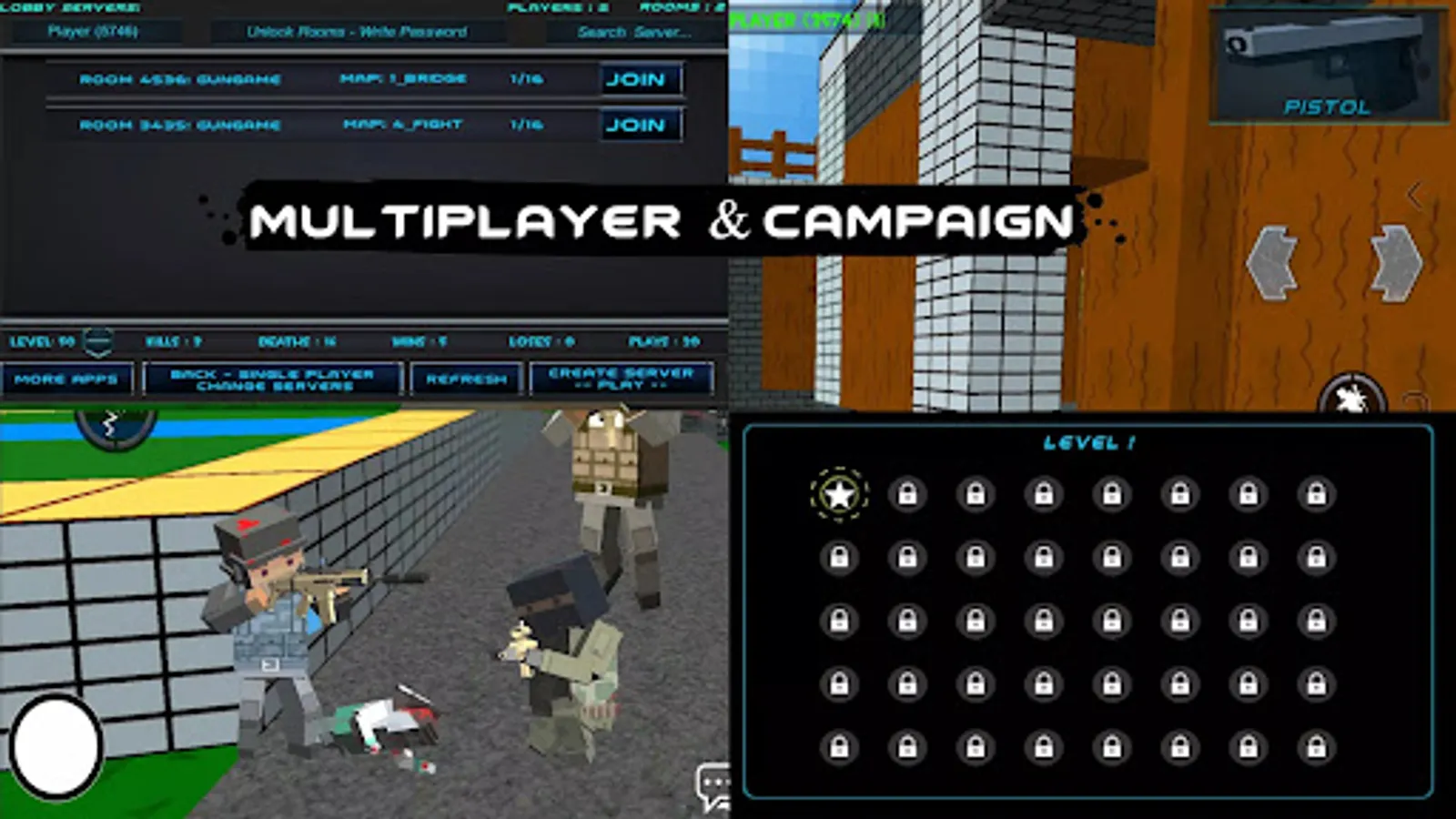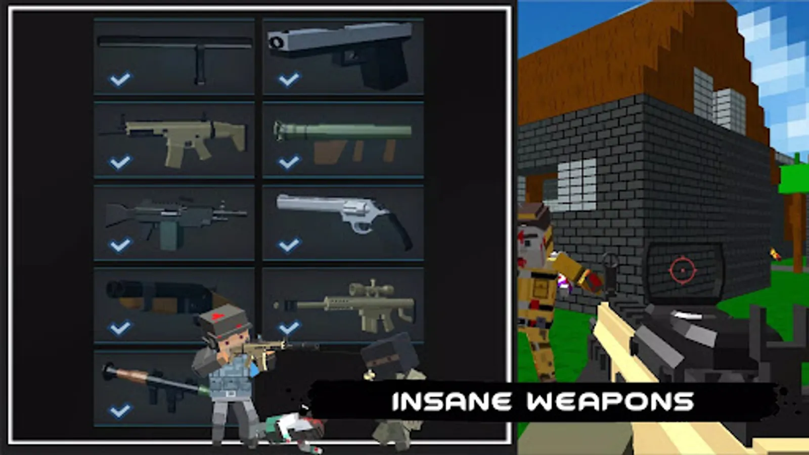 The main feature of multiplayer combat war games is that it: Easy to control the player and play. Fantastic combat gunner characters with several shooting arenas. Realistic 3D pixel environment. MULTIPLAYER: 4 MODS: team vs. team, free for all, you as zombie against all players and also enemy Ai, survival wave zombie, and gun game. - 9-PIXEL WEAPON. - 10 maps. The main feature of a single-player combat war game is single-player fps ND 40 AMAZING LEVELS. - different times of enemy zombies on each map and different types of guns on some levels. Free combat cubic arena shooting 3D for Android phones and tablets. We value your feedback!! Download our Blocky shooting war game: cubic combat arena and cube color wars. If you like our fps combat shooting survival battleground video game, don't forget to give it a five-star rating.