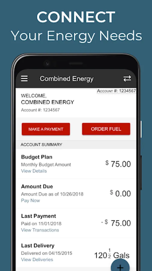 With all the convenience of a mobile app, access your Combined Energy Services account from the comfort of your mobile device! It's never been easier to: • Make Payments • Order Fuel • View your Account • And much More