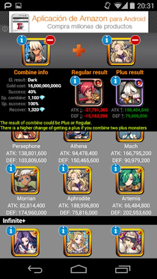 An App that helps you to know how to combine successfully to get easy your monsters on Monster Warlord game.