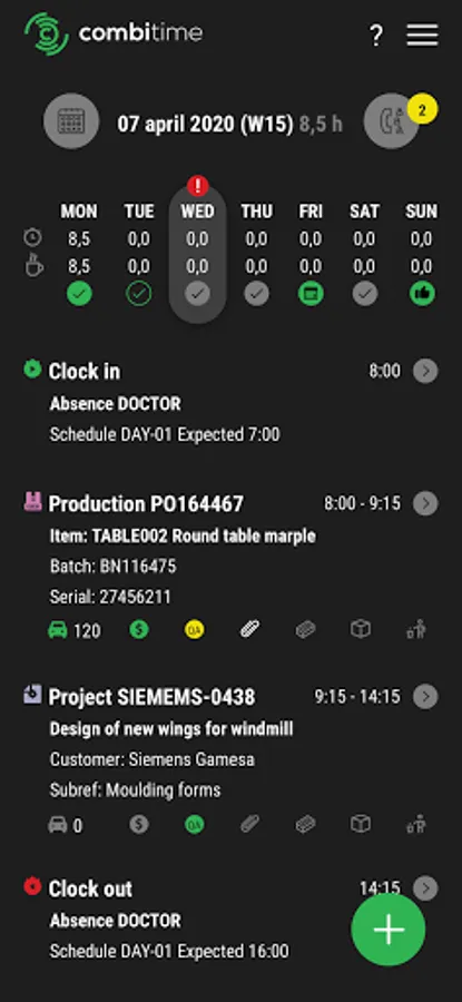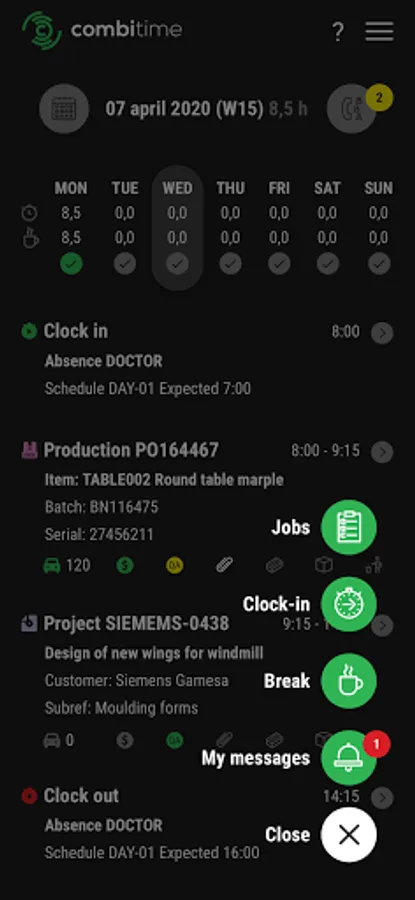 Registration of attendance, breaks, absences, etc. done via the intuitive Mobile App. All registration clients can be configured for individual needs, from the very simple to the more advanced. The configuration can be done all the way down to the individual employee if desired. Daily norms, weekly norms or other period norms are set up flexibly and generically.