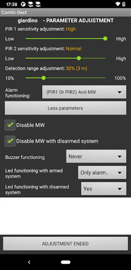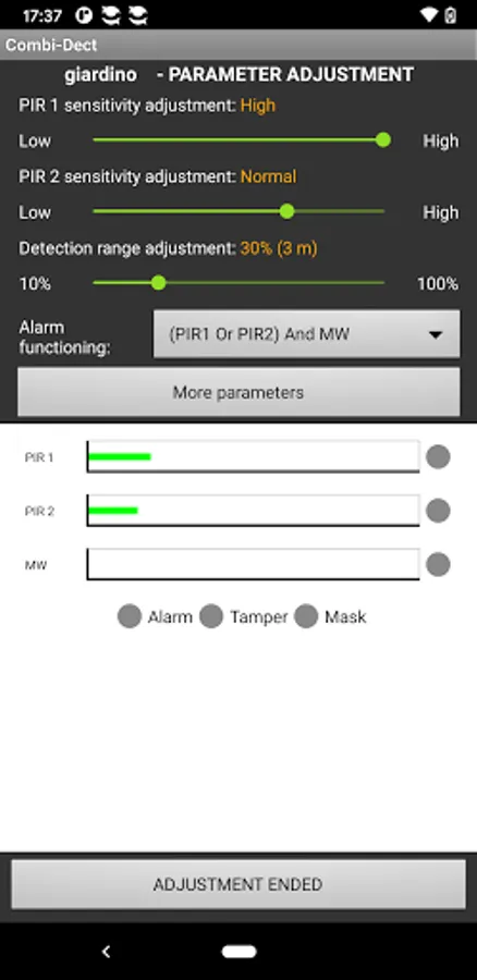 CombiDect is the Android APP for programming and configuring the parameters of Combivox detectors equipped with a Bluetooth module. Through this application it is possible to check the configuration of the set parameters directly on site, by measuring, in real time and thanks to a monitor, the detection sensitivity, distinguished between the IR and MW section.