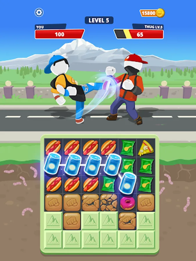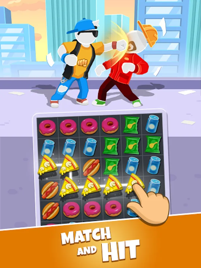 Punch above your weight in this super-fun and completely original match 3 fighting game where matching is the way to land blows on your opponents â the more of one type of junk food you can connect together, the harder you hit. Scarf down strings of hotdogs đ, burgers, donuts đ©, and potato chips to put some real power behind your punch and knock the stuffing out of an endless stream of challenges.