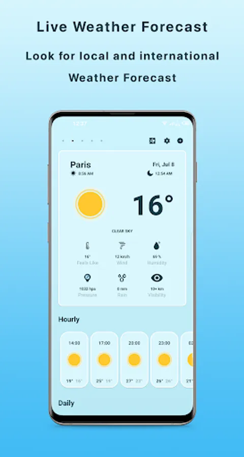 Find what the weather is today at my location? The weather forecast will give precise city weather predictions for weather today, weather tomorrow, weather in a week or sunday weather, that will help you plan all your events, holidays and trips. Don’t worry if you want to see local weather updates or international weather updates, all of them are available here in this best live weather app. The weather live app will bring all the features which are best among live weather & local weather apps.