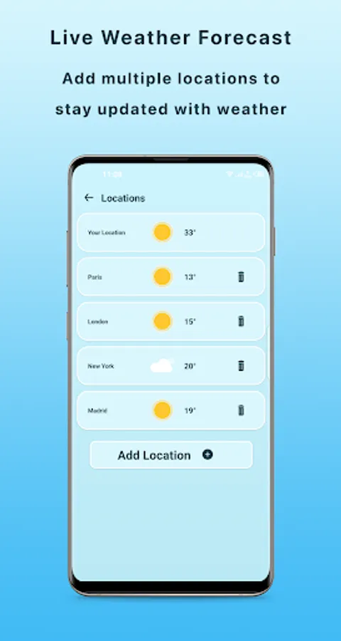 This new weather report app is fully customizable with amazing features. By using this daily weather app you can see the temperature today in your surroundings or anywhere else, daily and hourly weather forecasts, and useful information like wind speed, humidity, air pressure etc in new weather location app free for android. This best world weather info app is not only the local weather detector app but it gives severe weather alerts all over the world with a new weather live free app. Just enter the city weather name in the live weather info application for free, and get all the current weather live details within no time.